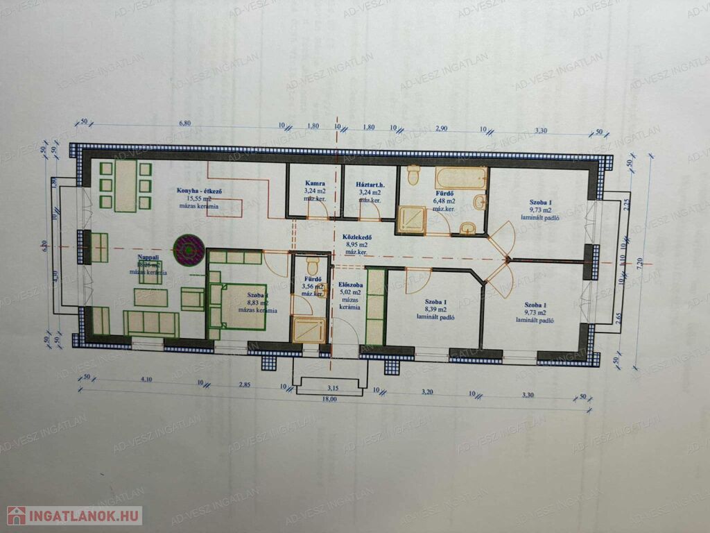 A 101m2-es belső hasznos alapterület alkalmassá teszi akár nagyobb család részére is a kényelmes együttélést.
