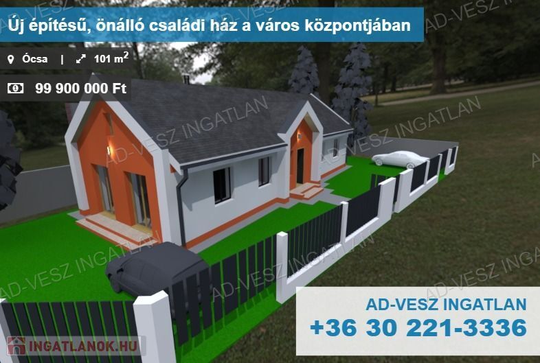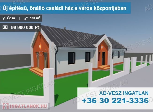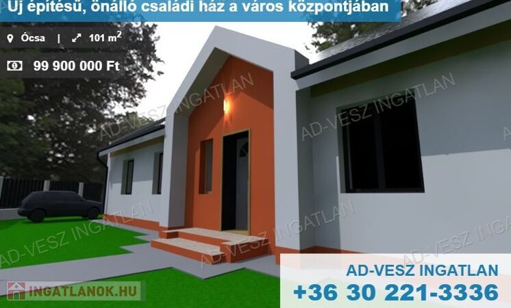 Eladásra kínálunk Ócsa központjában egy önálló, kulcsrakész, új építésű családi házat.