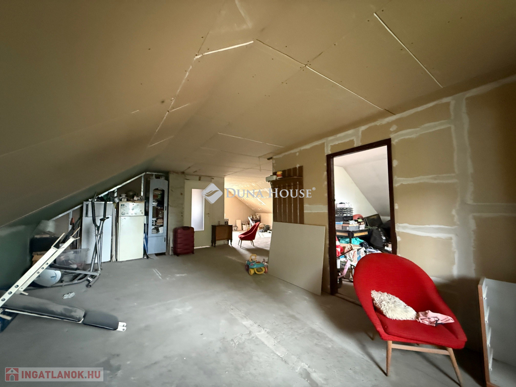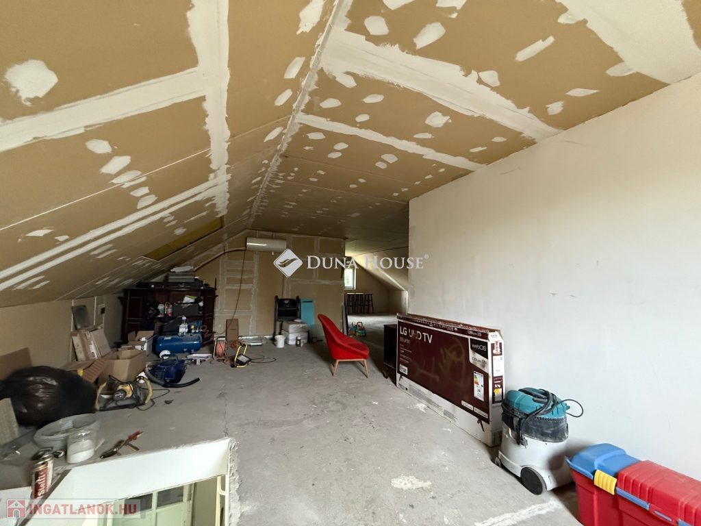 Budapesttől mindösszesen 20 km távolságra kínálom megvételre ezt a két szintes 140 nm alapzerülettel rendelkező családi házat a hozzá tartozó 366 nm alapterületű kerttel. Az épület a 80 - as évek végén épült , beton alapon 38-as tégla falazattal rendelkezik, teteje cserép héjazattal van ellátva. Kialakítása jelenleg 3 szoba , étkező, konyha ,fürdő és wc helység.Az ingatlan tetőterének beépítése el kezdődött, de már nem szeretné a tulajdonos befejezni. A tetőtérben további kényelmes 3 szobát és egy fürdőszobát ki lehet alakítani, de méretének köszönhetően akár egy különálló komplett lakás is berendezhető. A tetőtérben a víz kiállások és a fűtés kiállása már fent van !Az épületet a tulajdonos be szigeteltette 12 cm vastag hungarocell hőszigetelést kapott. A nyílászárók részben műanyagra lettek cserélve .A ház melegét és melegvíz ellátását egy kombi gázcirkó biztosítja. Az ingatlan jelenlegi állapotában is lakható , de némi ráfordítással egy remek családi ház varázsolható belőle!Amennyiben hirdetésem felkeltette érdeklődését, keressen bizalommal.