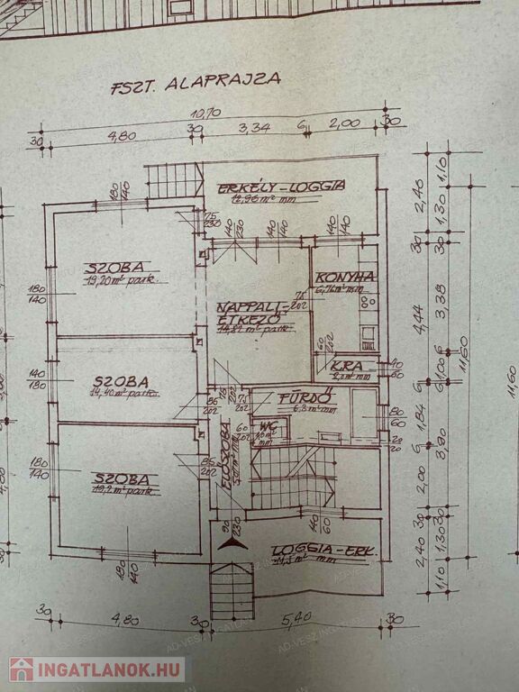 A földszinten 3hálószoba, nappali, konyha, fürdő, wc, kamra, előszoba található.
