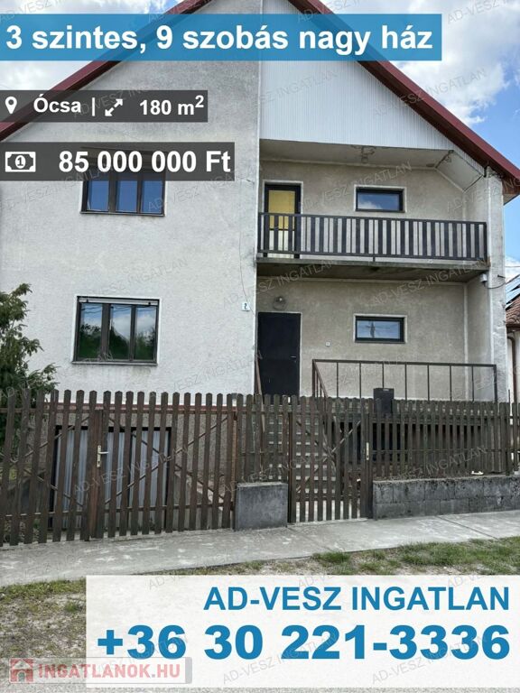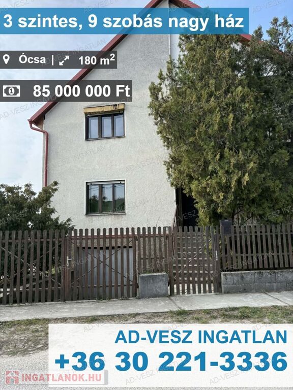 Ócsán kínálunk eladásra egy 900m2-es összközműves telken álló 3 szintes, 9 szobás, duplakomfortos, önálló családi házat.