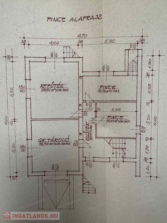 Az épület pince szintje 92m2-es, itt kapott helyet a garázs, kazánház, és több tároló.