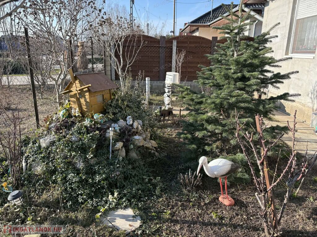 A 611m2-es összközműves telken a két lakrészből álló lakóépületen kívül még helyet kapott a fűtött garázs, és a kerti partiknak tökéletes pavilon is.