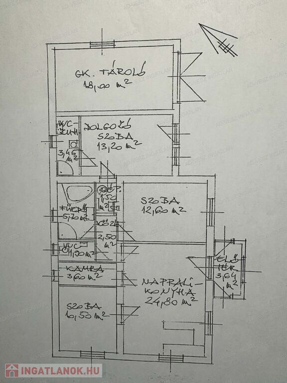 A másik, külön bejáratú lakrészben hálószoba, és egy fürdőszoba lett kialakítva, valamint innen nyílik a kazánház.