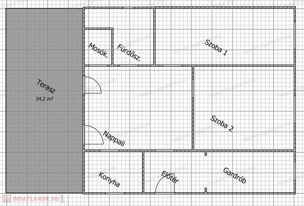 - 34 m2 fedett terasz