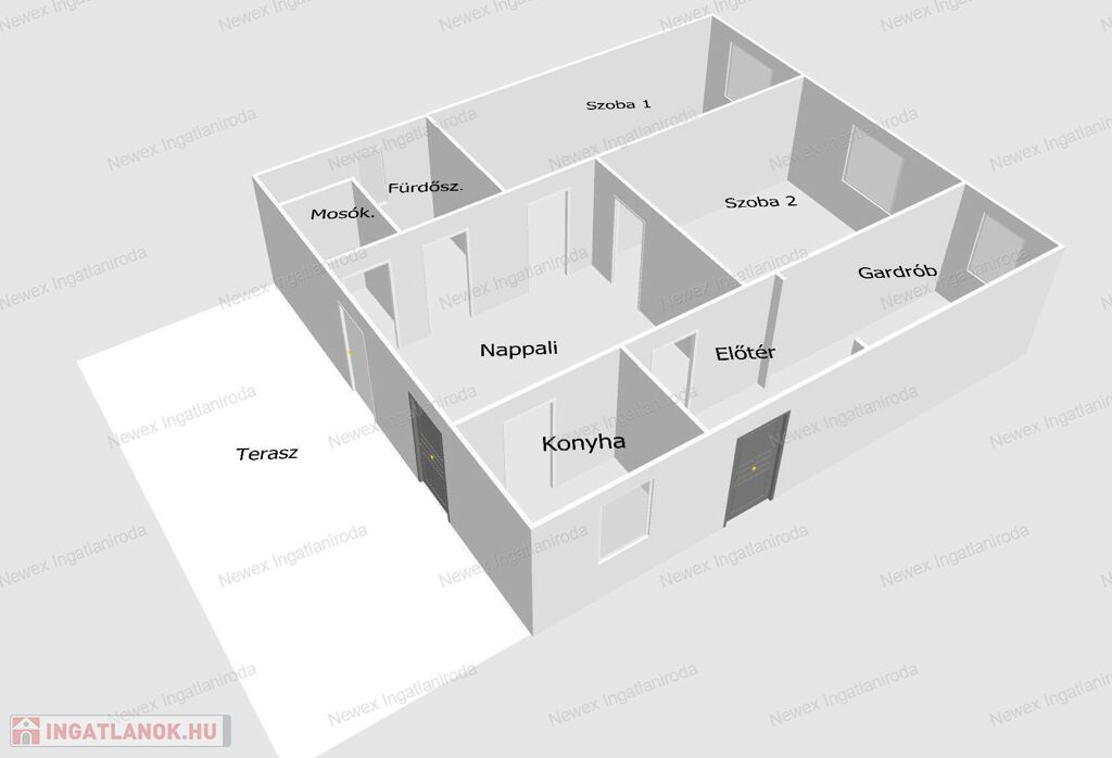- új több rétegű ablakok és ajtók, 2 kijárattal