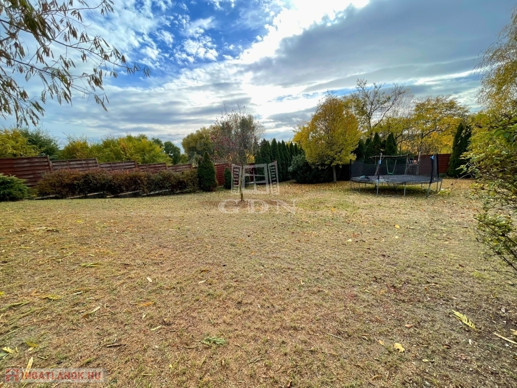 A telek hátsó, füves része ideális helyszín kerti-sütögető kialakítására, gyerekeknek játszani, konyhakertnek és család négylábú tagjai is örömüket lelik benne.