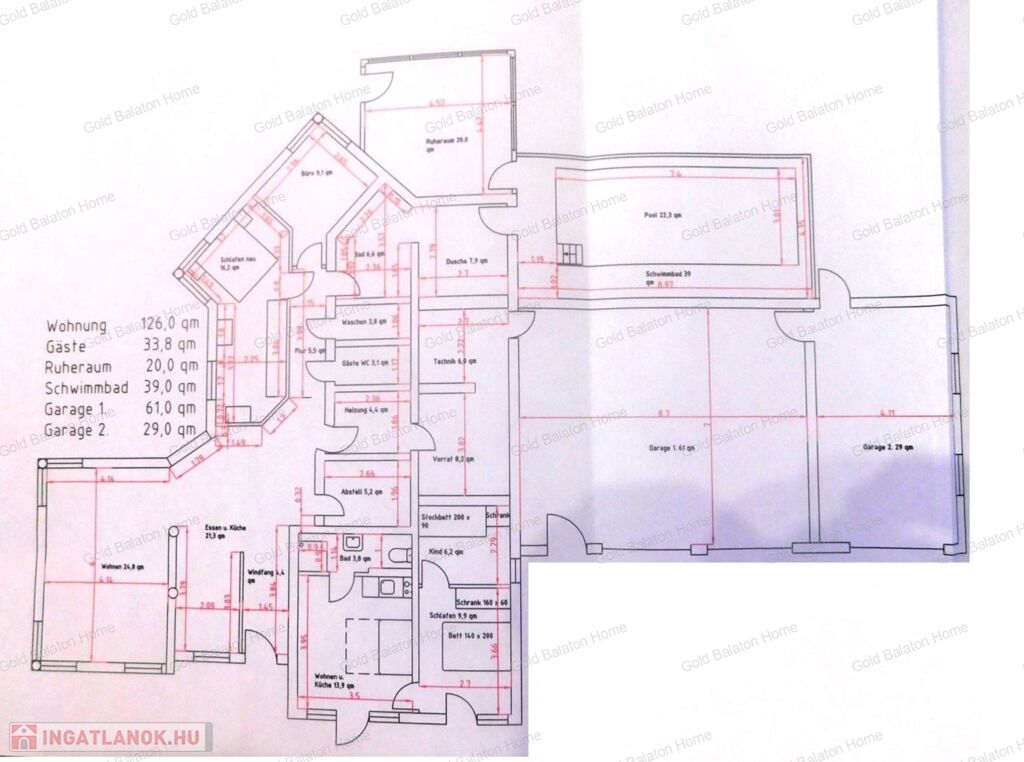 - a ház alapterülete: 126 nm, a külön bejáratú apartman alapterülete: 33,8 nm