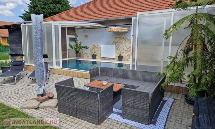 Egyszintes CSALÁDI HÁZ 126 nm-es alapterülettel, plusz 33,8 nm-es apartmannal, úszómedencével, duplagarázzsal és 1 műhelyként is használható garázzsal eladó.