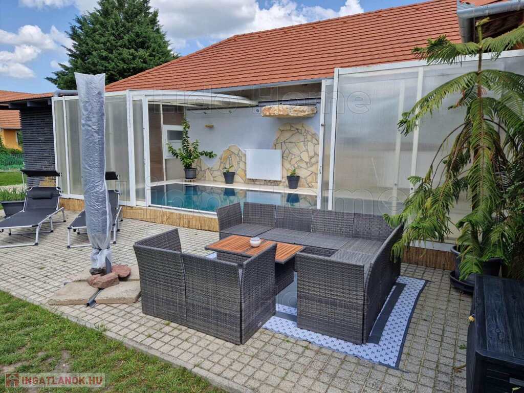 Egyszintes CSALÁDI HÁZ 126 nm-es alapterülettel, plusz 33,8 nm-es apartmannal, úszómedencével, duplagarázzsal és 1 műhelyként is használható garázzsal eladó.