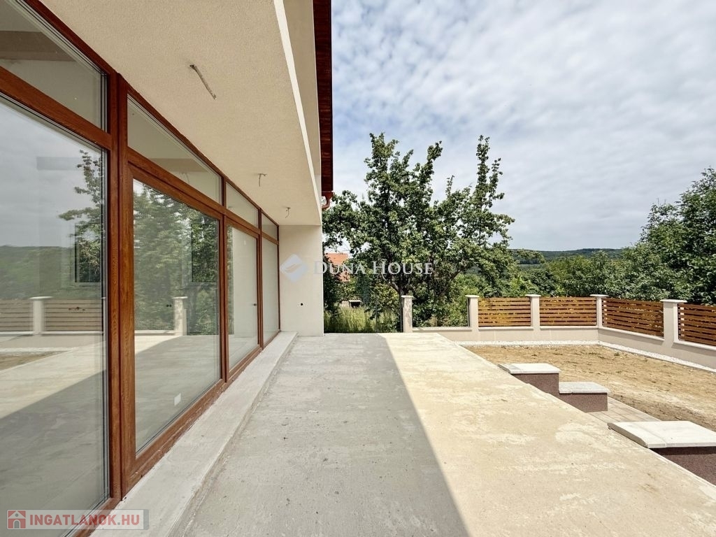 Orfű páratlan környezetében kínálunk Önnek megvételre két gyönyörű, örökpanorámás házat. A település kimondottan csendes részén, zöldövezetben helyezkedik el, 2 db külön-külön 140 m2-es családi ház , garázzsal, amely nyaralóként vagy lakóházként is egyaránt kitűnően használhatóak. Az ingatlan lakóövezetben helyezkedik el, összközműves, gázfűtéses. A teljes telek terület 1054 m2, amely házanként megosztva 527-527 m2.A családi házban 3 hálószoba, nappali, konyha, külön WC és fürdő található. A napfényes elhelyezkedésnek köszönhetően a lakás hangulatos és világos.Pár perces sétával érhető el a Pécsi-tó.Várható átadás 2025 nyara Fontosabb műszaki adatok:- Az ingatlan tehermentes, állami támogatás igénybe vehető.- A belső tér a vevő igényei szerint kerül kialakításra.- Nappali és konyha részben emelt belmagasság- Panorámás kilátás a Mecsekre- 30-as porotherm tégla 15-ös szigeteléssel- Műanyag nyílászárók, 3 rétegű üveggel- I.osztályú szaniterek és burkolatok.- 1 szintes lakótér: 3 szoba, 1 fürdő, 1 külön WC, valamint tágas, teraszra nyíló nappali, konyha és garázs.- A házakhoz tartozik még 28-28 m2-es terasz.