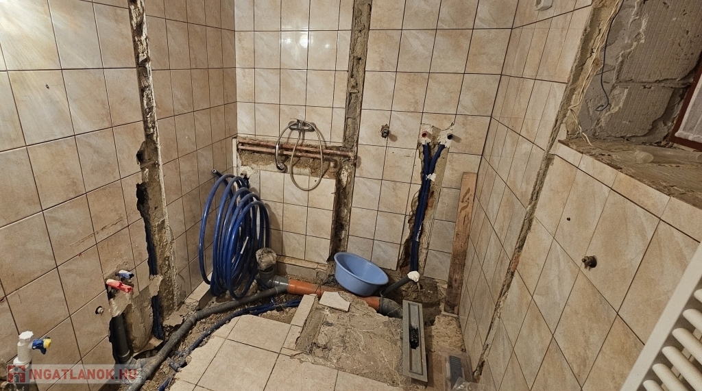 A fürdőszoba kialakítása elkezdődött, így az új tulajdonos saját ízlésére formálhatja.