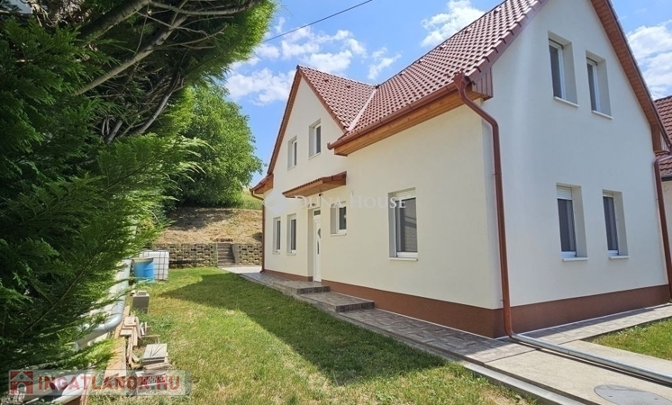 Orfűn a Pécsi tóhoz és a központhoz közel, egy csendes utcában eladó 1/1 tulajdonú 2020-ban épült, sosem lakott (gyakorlatilag új) családi ház. A ház két szintes, a földszint teljesen beépített a következő helységekkel: nappali-konyha, fürdő, külön wc, egy tároló/gépészeti helység, közlekedő lépcsőházzal és két szobával. A tetőtér 1m magas térdfallal készült jól beépíthető kialakításban, a 3db oromfalon 2-2db ablakkal ellátva. Az emelet hasznos alapterülete 52 négyzetméter (59m2 beépíthető). A ház összesen kb.120 lakható négyzetméterrel rendelkezik. Az udvar 420 négyzetméteres, nagyobb része teljesen vízszintes, további része egy támfalt követően emelkedik. Hátul burkolt 36 négyzetméteres terasz található, az épület körül burkolt járda készült. Épületszerkezet: 30cm Porotherm Klíma tégla + 8cm EPS szigeteléssel készült falak, vasalt felbetonnal ellátott E-gerendás vasbeton födém, vasbeton lépcső. Műanyag ablakok 3 rétegű üveggel TROCAL tokkal, alumínium redőnnyel és szúnyoghálóval ellátva készültek (teraszajtónál motoros redőny). Napcella 4,2kW (szaldós), villanybekötés: 3x16A, új víz és szennyvízrákötés készült az építés során, a telek gázcsonkkal is rendelkezik. A lakrész padlófűtéssel ellátott, jelenleg villanykazánnal fűtve, de ez kicserélhető split rendszerű hőszivattyúra, melynek védőcsövezése elő van készítve az épületben. További kérdés esetén hívjon bizalommal.