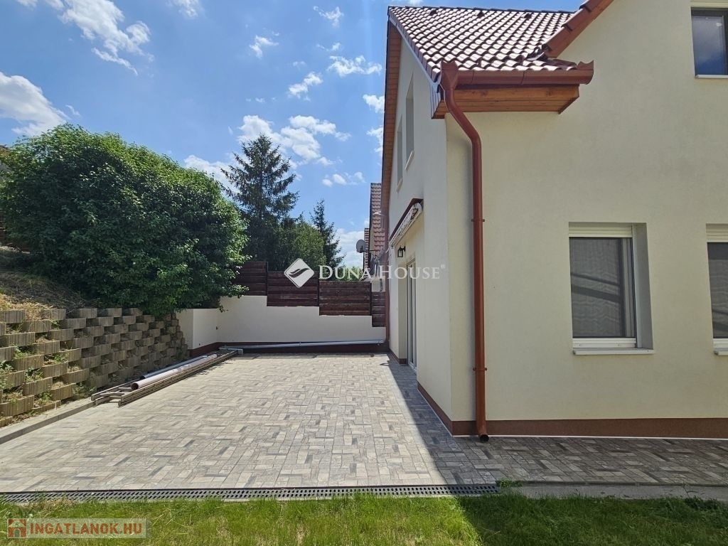 Orfűn a Pécsi tóhoz és a központhoz közel, egy csendes utcában eladó 1/1 tulajdonú 2020-ban épült, sosem lakott (gyakorlatilag új) családi ház. A ház két szintes, a földszint teljesen beépített a következő helységekkel: nappali-konyha, fürdő, külön wc, egy tároló/gépészeti helység, közlekedő lépcsőházzal és két szobával. A tetőtér 1m magas térdfallal készült jól beépíthető kialakításban, a 3db oromfalon 2-2db ablakkal ellátva. Az emelet hasznos alapterülete 52 négyzetméter (59m2 beépíthető). A ház összesen kb.120 lakható négyzetméterrel rendelkezik. Az udvar 420 négyzetméteres, nagyobb része teljesen vízszintes, további része egy támfalt követően emelkedik. Hátul burkolt 36 négyzetméteres terasz található, az épület körül burkolt járda készült. Épületszerkezet: 30cm Porotherm Klíma tégla + 8cm EPS szigeteléssel készült falak, vasalt felbetonnal ellátott E-gerendás vasbeton födém, vasbeton lépcső. Műanyag ablakok 3 rétegű üveggel TROCAL tokkal, alumínium redőnnyel és szúnyoghálóval ellátva készültek (teraszajtónál motoros redőny). Napcella 4,2kW (szaldós), villanybekötés: 3x16A, új víz és szennyvízrákötés készült az építés során, a telek gázcsonkkal is rendelkezik. A lakrész padlófűtéssel ellátott, jelenleg villanykazánnal fűtve, de ez kicserélhető split rendszerű hőszivattyúra, melynek védőcsövezése elő van készítve az épületben. További kérdés esetén hívjon bizalommal.