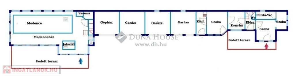 A déli fekvésű ingatlan a belváros közelében, csendes, zöldövezeti részen helyezkedik el. Az épületben minden igényt kielégítő wellness részleg került kialakításra, ahol egy 5X20 méteres beltéri automatizált medence, valamint egy 10 személyes jakuzzi, infraszauna és egy 8 személyes finn szauna található.