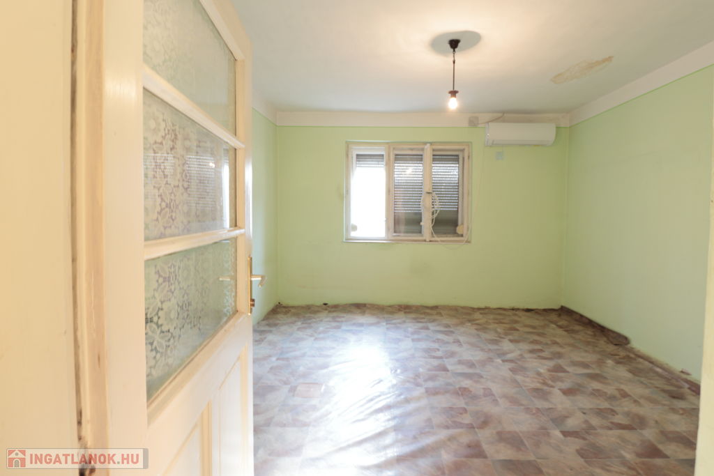Orosházán a 47-es főút közelében, a keleti városrészben, családiházas rendezett lakókörnyezetben kínálunk eladásra egy üresen álló, kipakolt állapotú tégla kockaházat, rendezett telken. Az ingatlant tehermentes és azonnal birtokbavehető. A családi ház felújításra és korszerűsításre szorul, jelenleg 3 szobából, közlekedő folyosóból, vizesblokk, valamint kamrahelyiség (későbbiekben lehet önálló konyha is) áll. Jó állapotú melléképületekkel rendelkezik.