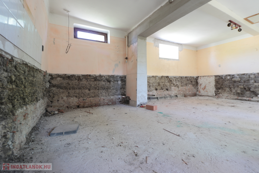 Orosházán a déli városrészben kínálunk eladásra és 788 négyzetméteres telken elhelyezkedő, remek, délkeleti tájolású vegyes falazatú, felújítás alatt lévő családi házat. Az ingatlanban a falazat, mennyezet és fűtésrendszer korszerűsítése, valamint bontás/egybenyitás elkezdődött, de jelen állapotában saját elképzelések szerint módosítható és befejezhető a felújítás. A családi házban 2 utcafronti nagy szoba, egy gardrób és szülői háló, különálló WC és fürdőszoba, háztartási helyiség, valamint egy egybenyitott konyha-étkező-nappali elosztás kapott helyett. A helyiségek egy nagy előszobán és tágas folyosón keresztül közelíthetők meg. Az épületben már hőszigetelt fa nyílászárók találhatóak, új elektromos hálózat és 3 fázis. A családi ház melléképülettel rendelkezik (ebben önálló vizesblokkrendszer van), egy önálló garázs és egy 3 gépkocsiállásos műhely, amely önálló egységként vállalkozásra is alkalmas. Az ingatlan falazata javításra szorul, a műhely telekkönyvi rendezésre, így CSOK+ nem igényelhető, egyéb szabadfelhasználású hitelkonstrukcióval, Babaváró stb. megvásárolható. Hitelügyintést és személyre szóló kalkulációt kérjen az irodától!