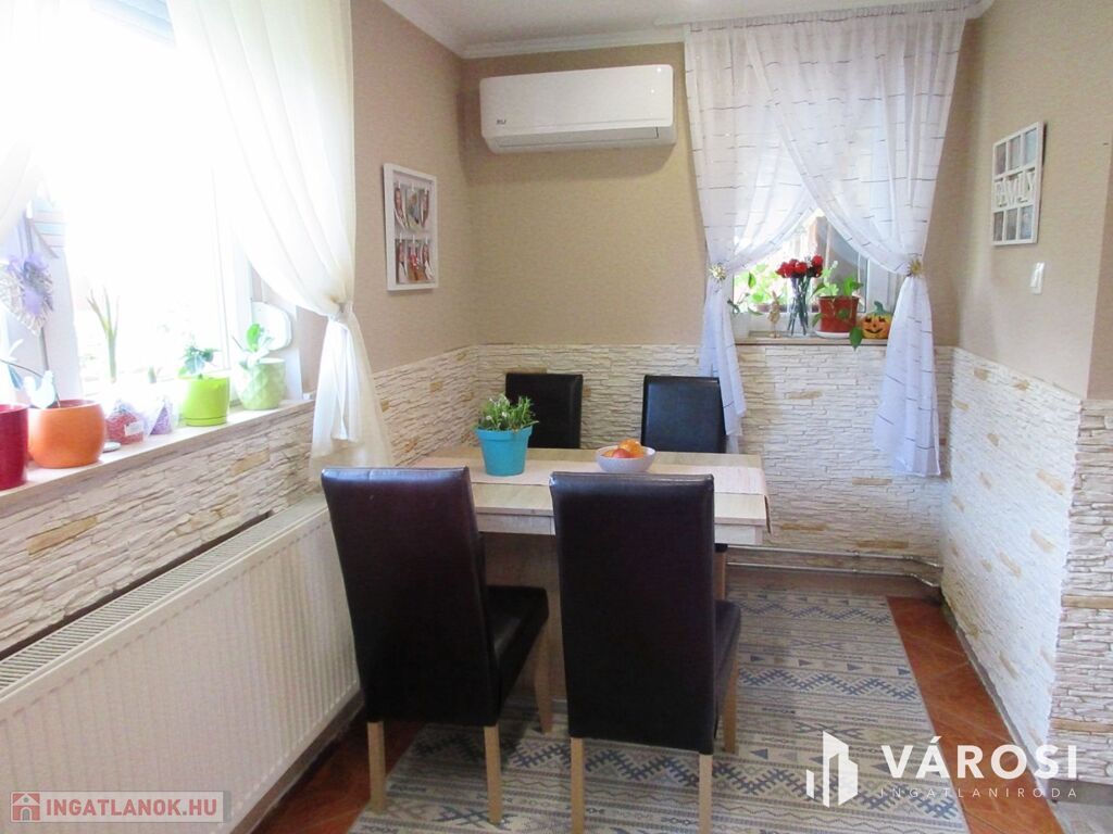 Orosházán, a Szarvasi úton kínálom eladásra ezt a vegyes falazatú családi házat, melyet a teljesség igényével újítottak fel. Az összes nyílászáró hőszigetelt, a szobákban laminált parketta, minden más helységben hidegburkolat. Az áramhálózat teljesen felújítva, fí relével. A fűtése gáz cirkó kazán, radiátor hőleadókkal. A nyár melegét egy hűtő-fűtő klíma enyhíti.