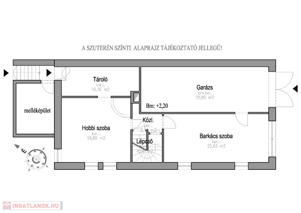 - Szobák: ~25,00 m2; ~14,00 m2; ~9,00 m2