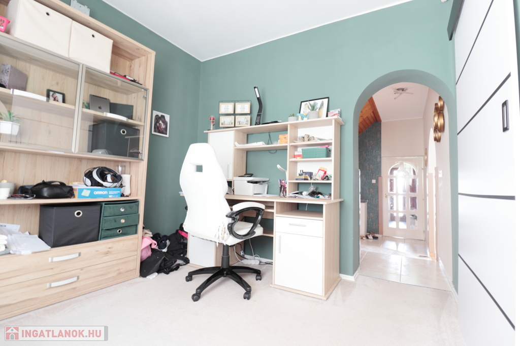 Külön dolgozószoba, kamra, WC és fürdőszoba a földszinten, külön bejáratú vállalkozásra alkalmas helyiség, kézmosóval.