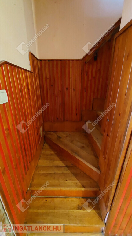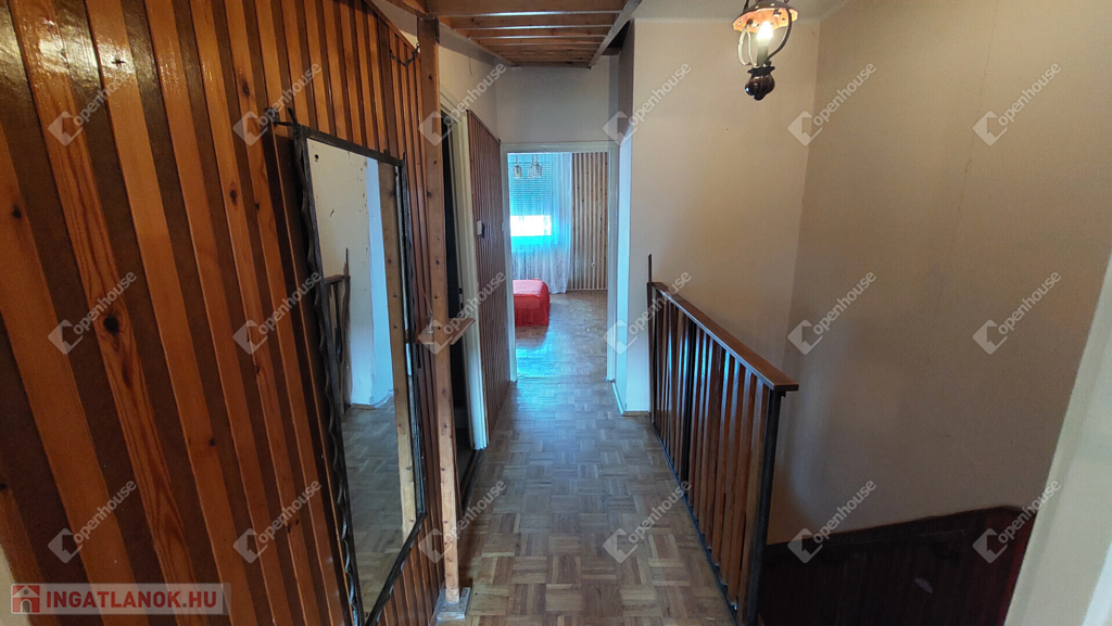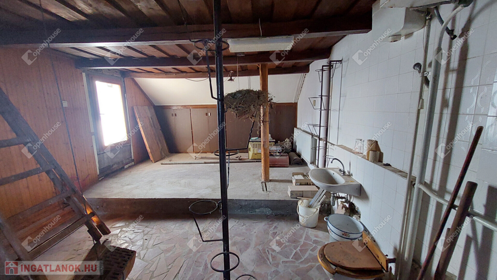 Tetőtér: beépített, burkolata kő, a víz- és villanykiállások előkészítve (mosdó, WC, zuhanyzó), mennyezete esztétikus, gerendás