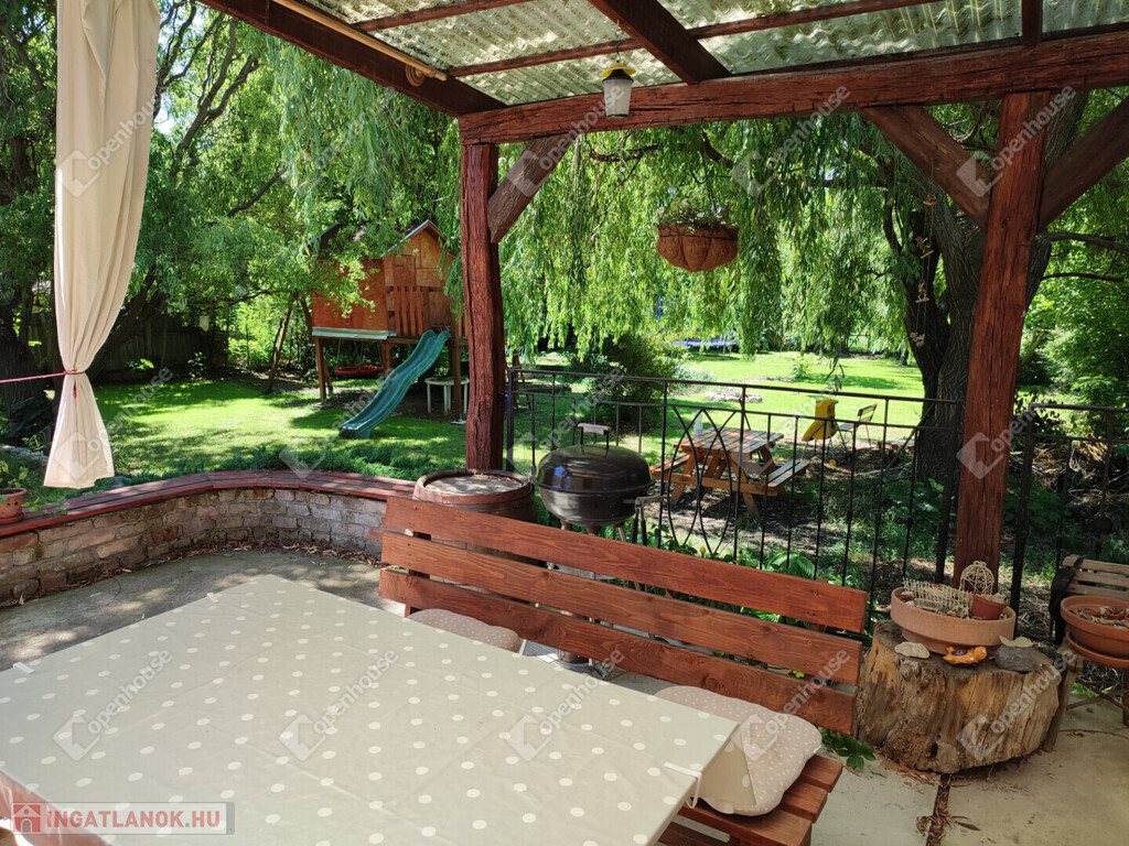 a telek végén patak csörgedezik, amely szinte erdei hangulatot teremt