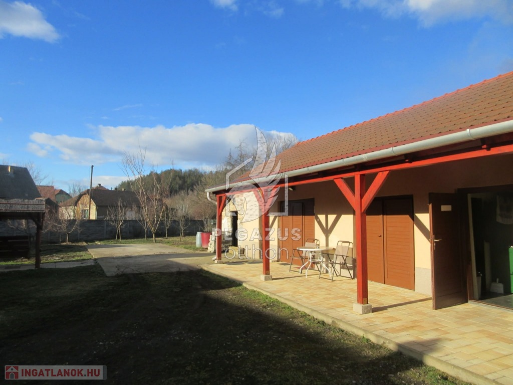 A melléképület részéhez térkővel burkolt, fedett terasz tartozik, amely kiváló helyszíne lehet családi és baráti összejöveteleknek, pihenésnek.