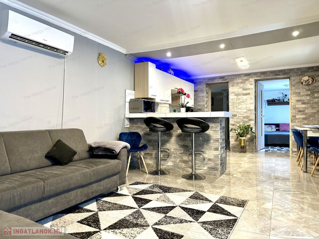 2 hálószoba, amerikai konyhás nappali étkezővel, tágas előszoba, modern fürdőszoba épített zuhanykabinnal