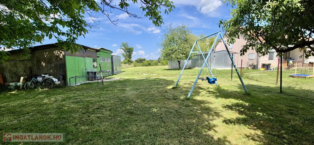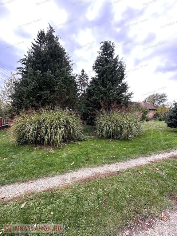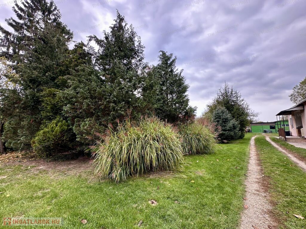 A három beállós garázzsal és tárolóval rendelkező ingatlan 2247 m²-es, sík, teljesen körbekerített teleken áll, ahol gyümölcsfák (dió, cseresznye, őszibarack, vilmoskörte, meggy), fenyők és díszcserjék biztosítják a természet közeli hangulatot. A kertben kiépített kis játszótér gondoskodik arról, hogy a legkisebbek is biztonságosan játszhassanak a friss levegőn.