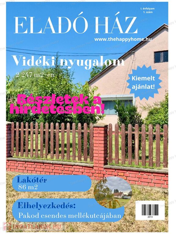 Zala megye festői fekvésű településén, Pakod községben kínálunk eladásra egy igazán különleges otthont. Ez az 86 m²-es, nappali + 2 szobás, jó állapotú, ÖSSZKÖZMŰVES, felújított TÉGLA családi ház GARÁZZSAL tökéletes választás kisgyermekes családoknak, nyugalomra vágyóknak és mindazoknak, akik szeretnének beköltözni egy szeretettel gondozott otthonba.