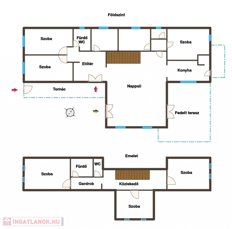 A két szint külön bejárattal leválasztható, így akár kétgenerációs lakhatásra is tökéletes.