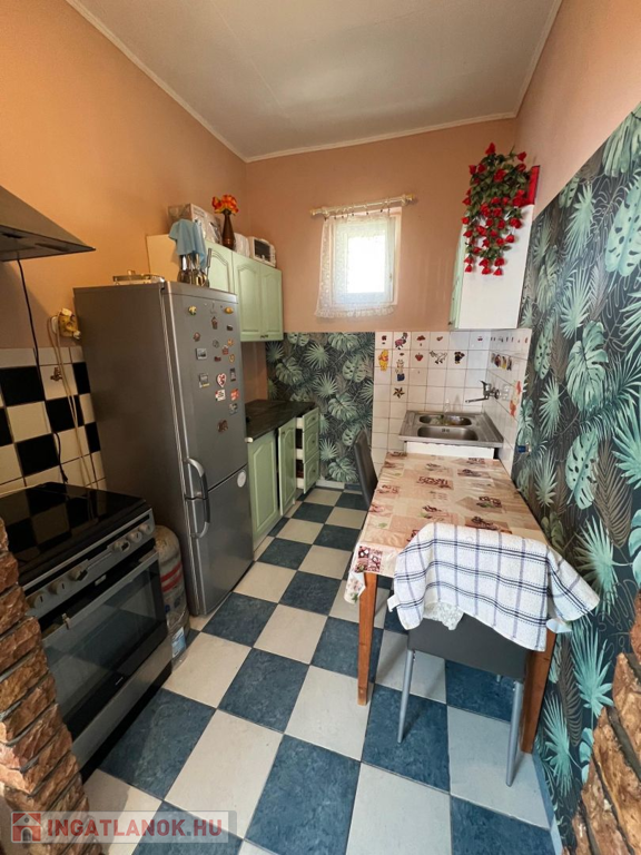 Pannonhalmán, 930 m2-es telken elhelyezkedő, 81 m2-es, két szoba, nappalis, szigetelt lakóház eladó.