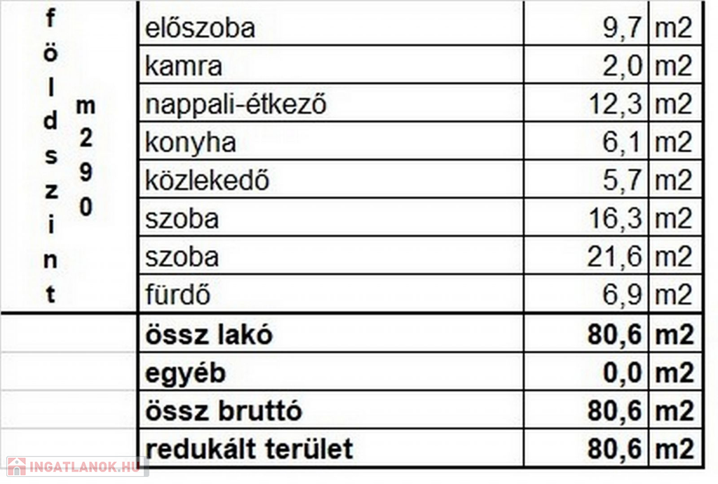 A fotók között megtalálható a ház alaprajza és a helyiséglistája.