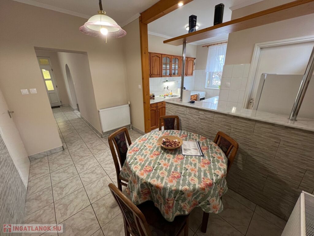 Pannonhalma központi részén, 948 m2-es telken, 1986-ban épült és azóta felújított, szigetelt, nappali plusz 3 szobás, 99 m2-es lakóterülettel, valamint ezen kívül 98 m2-es alagsori résszel, garázzsal, 8,6 m2-es erkéllyel rendelkező lakóház eladó.