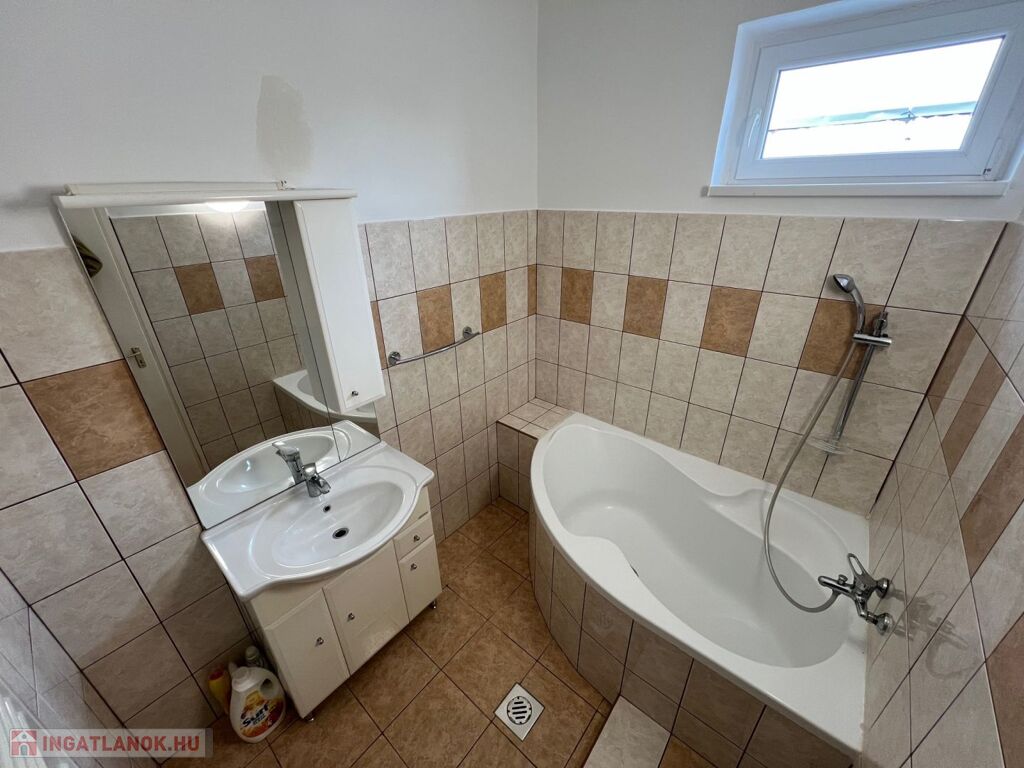 A sarokkáddal ellátott fürdőtől külön helyiségben található a wc.