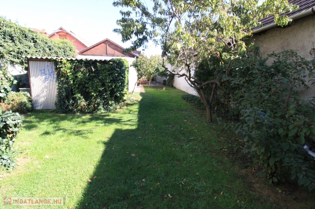 Az ingatlanhoz tartozik egy 684 négyzetméteres rendezett sík telek kert termő gyümölcsfákkal.