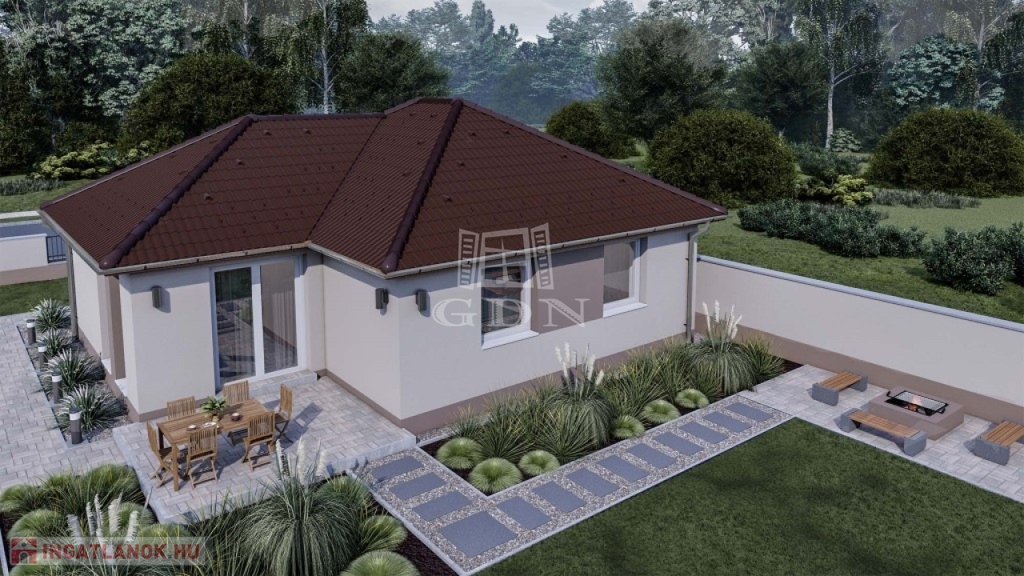 Vh-004343 Pátkán, Székesfehérvártól 10 perc autóútra, átmenő forgalomtól mentes, csendes utcában ÚJÉPÍTÉSŰ „közel nulla energiaigényű épületek követelményszintjének megfelelő” energiaosztályú, 75 m2 hasznos alapterületű, nappali+3 szobás, ÖNÁLLÓ családiház 990 m2-es telekterülettel eladó.