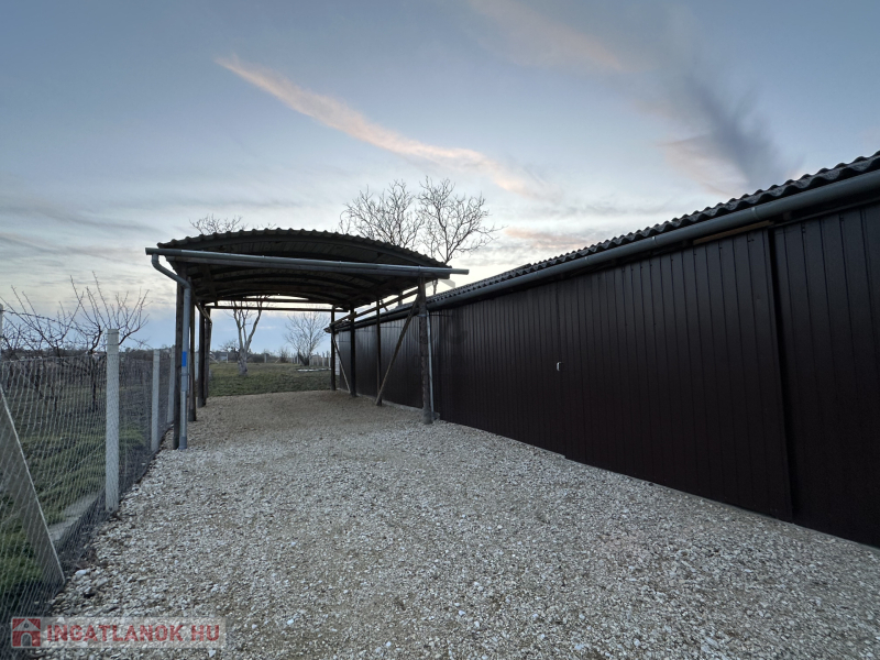 Pátkán eladó egy teljes felújított nappali és 4 szobás, teraszos családi ház dupla garázzsal, 146m2-es fedett tárolóval, 80m2-es fedett beállóval.