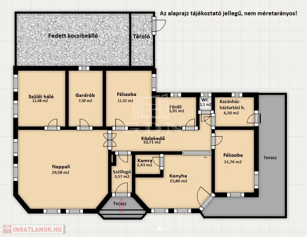 A bruttó méret, a terv szerinti terasz, 50 %-át tartalmazza.