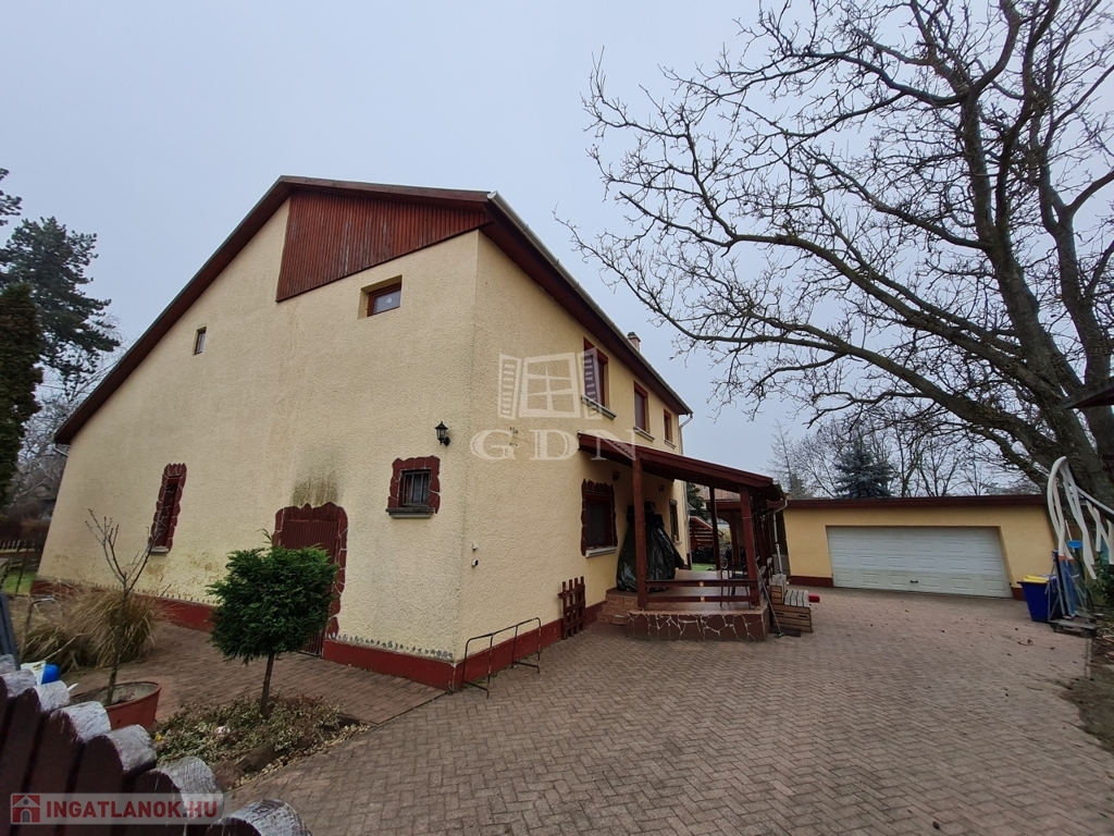 A két lakrészhez, 632 m² telek tartozik. Az udvaron, kétállásos GARÁZS és TÁROLÓ, és a ház egy része alatt PINCE van.