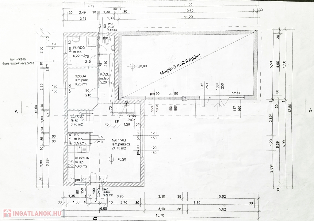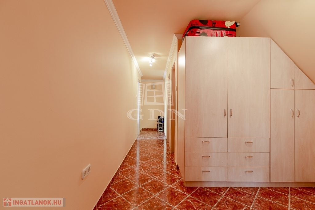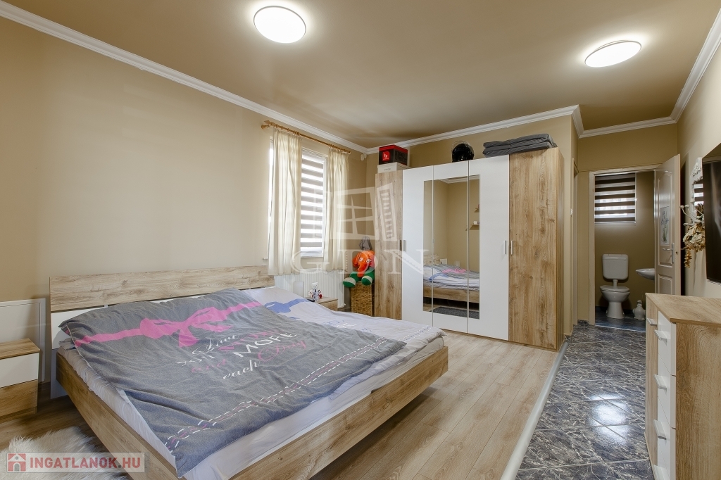 A régebbi épület 3 szintes,1983-ban épült, beton alapra épült, 40 cm-es tégla falazattal, beton födémmel, pala tetővel és fa thermo nyílászárókkal. Ingatlan részben jó állapotú, részben felújítandó, a telek utcához közelebb eső részén helyezkedik el. Az egész épület alatt pince szint van, ahol a kazánház és táróló található. A földszinten, illetve az emeleten, egy-egy külön bejáratú lakás áll rendelkezésünkre, mind két lakásban van külön fürdőszoba, konyha, étkező, nappali és szobák is.