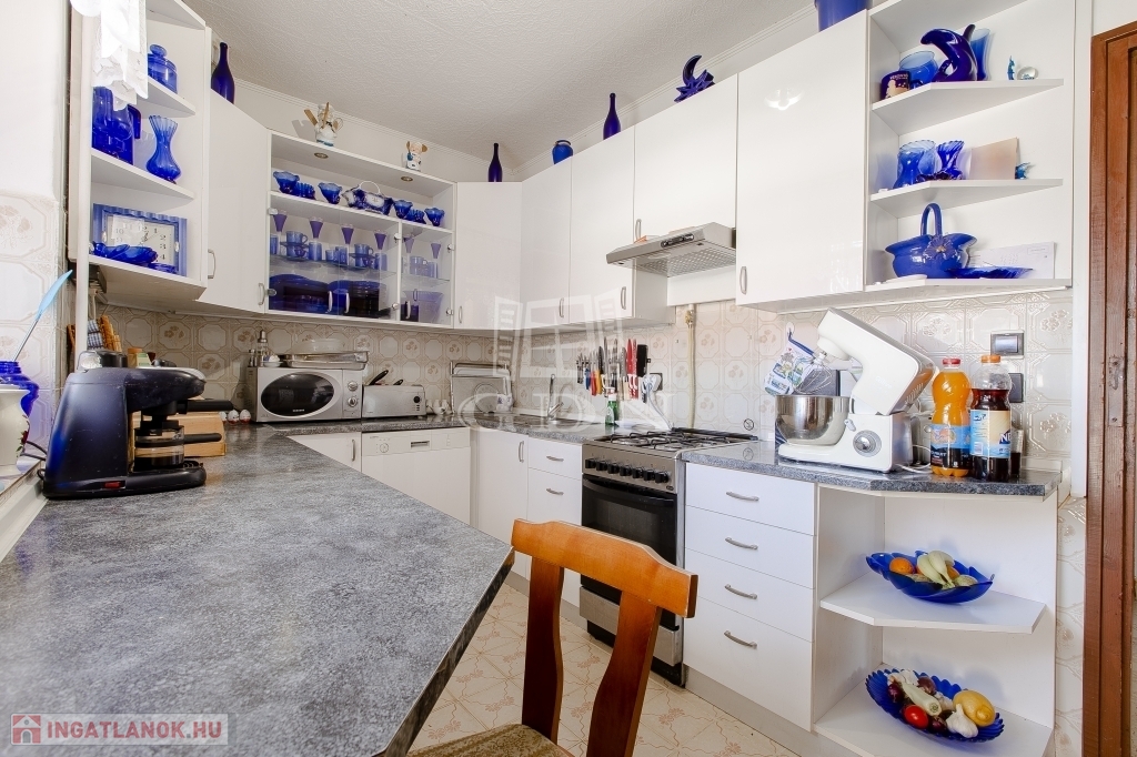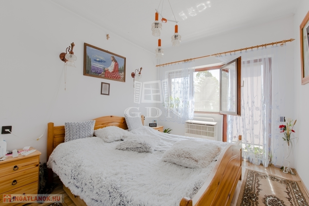 A régebbi épület 3 szintes,1983-ban épült, beton alapra épült, 40 cm-es tégla falazattal, beton födémmel, pala tetővel és fa thermo nyílászárókkal. Ingatlan részben jó állapotú, részben felújítandó, a telek utcához közelebb eső részén helyezkedik el. Az egész épület alatt pince szint van, ahol a kazánház és táróló található. A földszinten, illetve az emeleten, egy-egy külön bejáratú lakás áll rendelkezésünkre, mind két lakásban van külön fürdőszoba, konyha, étkező, nappali és szobák is.