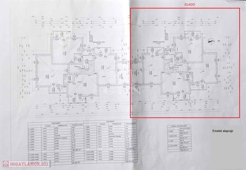 A ház mindkét lakása egyben is megvásárolható, ami összesen 745,82 m², két szinten 16 szoba. Ára 530 millió forint.