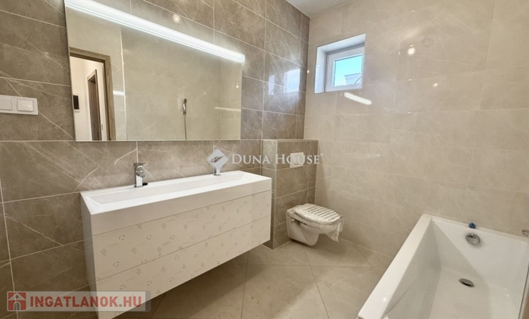Pécsett Rózsadombon Újépítésű, A+-os minimál stílusú otthon!Egy modern 96m2-es, 3 szobás ingatlant kínálunk eladásra, melyben az amerikai konyha és a tágas nappali együtt teremtik meg az otthon meleg hangulatátAz inghatlan magas minőségben kivitelezett, minden apró részletre odafigyelve.Az alumínium elektromos redőnyök pedig nem csak a praktikumot szolgálják, de a modern megjelenést is erősítikEgy telken lévő 2 db önálló földszintes, modern, lapostetős prémium anyagokkal és műszaki megoldásokkal készült 2 db új lakóház,hőszivattyúval készített melegvízzel és padlófűtéssel, klímával és H tarifával ellátott lakóépület. Kertvárosi, családi házakkal körbevett, csendes zöldövezet.Hőszigetelt,színterezett aluminium redőnyökkel, háromrétegű hőszigetelt üvegezésű nyílászárókkal, saját pergolás gépkocsi beállóval, 8 m3-es földalatti csapadékvíztárolóval ellátva,Parkosított, 200m2-es, saját kerttel, ( utcafronti kerítés előtt 3 db gk. számára parkolási lehetőséggel) kaputelefonnal, távműködtetésű kapuval ellátott ingatlan.Az ingatlan újépítésű, a vételár után 5%-os ÁFA visszaigénylésére van lehetőség.Ne hagyja ki ezt a kivételes lehetőséget!Bővebb információért megtekintésért, várom hívását!