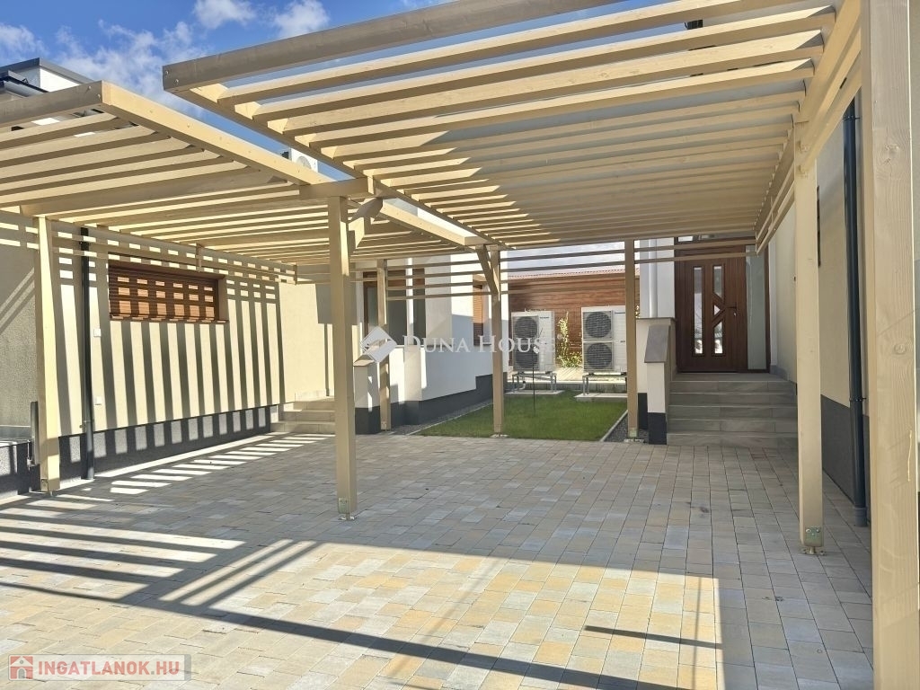 Pécsett Rózsadombon Újépítésű, A+-os minimál stílusú otthon!Egy modern 96m2-es, 3 szobás ingatlant kínálunk eladásra, melyben az amerikai konyha és a tágas nappali együtt teremtik meg az otthon meleg hangulatátAz inghatlan magas minőségben kivitelezett, minden apró részletre odafigyelve.Az alumínium elektromos redőnyök pedig nem csak a praktikumot szolgálják, de a modern megjelenést is erősítikEgy telken lévő 2 db önálló földszintes, modern, lapostetős prémium anyagokkal és műszaki megoldásokkal készült 2 db új lakóház,hőszivattyúval készített melegvízzel és padlófűtéssel, klímával és H tarifával ellátott lakóépület. Kertvárosi, családi házakkal körbevett, csendes zöldövezet.Hőszigetelt,színterezett aluminium redőnyökkel, háromrétegű hőszigetelt üvegezésű nyílászárókkal, saját pergolás gépkocsi beállóval, 8 m3-es földalatti csapadékvíztárolóval ellátva,Parkosított, 200m2-es, saját kerttel, ( utcafronti kerítés előtt 3 db gk. számára parkolási lehetőséggel) kaputelefonnal, távműködtetésű kapuval ellátott ingatlan.Az ingatlan újépítésű, a vételár után 5%-os ÁFA visszaigénylésére van lehetőség.Ne hagyja ki ezt a kivételes lehetőséget!Bővebb információért megtekintésért, várom hívását!