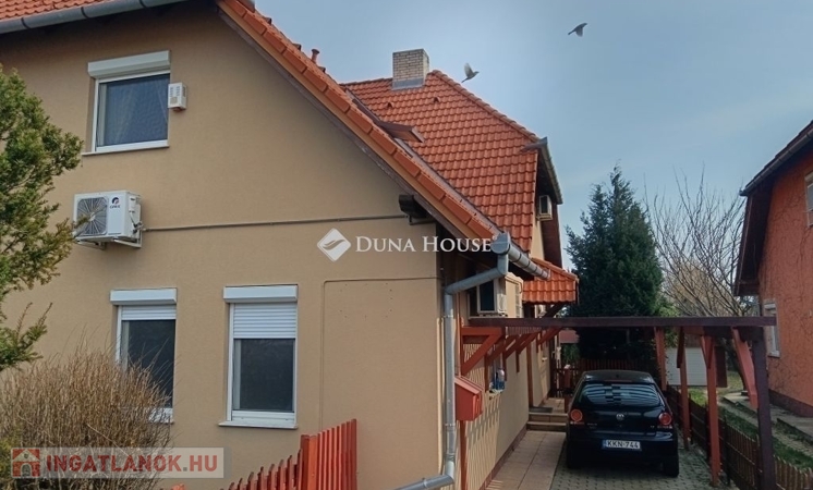 Tágas ikerház 600 m² telken eladó PécsÚjhegy kedvelt utcájában !Eladásra kínálunk egy kiváló adottságokkal rendelkező, két szintes sorházi otthont Pécs Újhegy egyik csendes, rendezett utcájában.Az ingatlan főbb jellemzői: 600 m²-es, sík telek összesen 140 m² lakóterület, melyből: Földszint: 80 m² Tetőtér: 60 m² Nappali-konyha-étkező 5 szoba+beépített gardrób 2 fürdő, 2 WC Építés 1991-ben. Jelentős átépítés és felújítás 2007 Nappaliból a belső udvarra nyíló 15 m²-es fedett teraszTovábbi jellemzők gáz cirkó fűtés vízteres gázkazánnal mindkét szinten fürdőszoba és WC mindkét szinten hűtő-fűtő légkondicionálók jó állapotú burkolatok gépesített konyha műanyag nyílászárók+redőny+szúnyogháló nappaliban teljes falszélességben tolóajtó+ motoros redőny térkövezett gépkocsibeálló 2 autó részére épített kerti grillező+ kerti tároló külső szigetelés kiépített riasztórendszer, biztonsági szolgáltatóhoz bekötveAz ingatlan ideális választás azoknak, akik tágas otthont keresnek terasszal és kerttel egy nyugodt, mégis jól megközelíthető városrészben.További információért vagy megtekintési időpontért keressen bizalommal a megadott elérhetőségeimen.