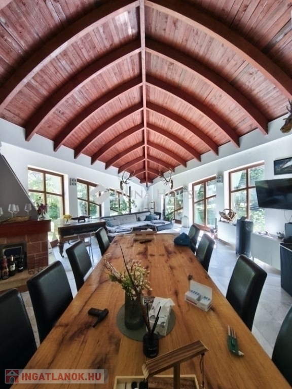 Háromszintes, nettó 240 m²-es otthon, 2132 m²-es, parkosított telken. A kert egyik legnagyobb előnye az ellenáramoltatós, 1,7 méter mély medence, valamint a hangulatos pavilon, ami ideális helyszín a közös kerti programokhoz.