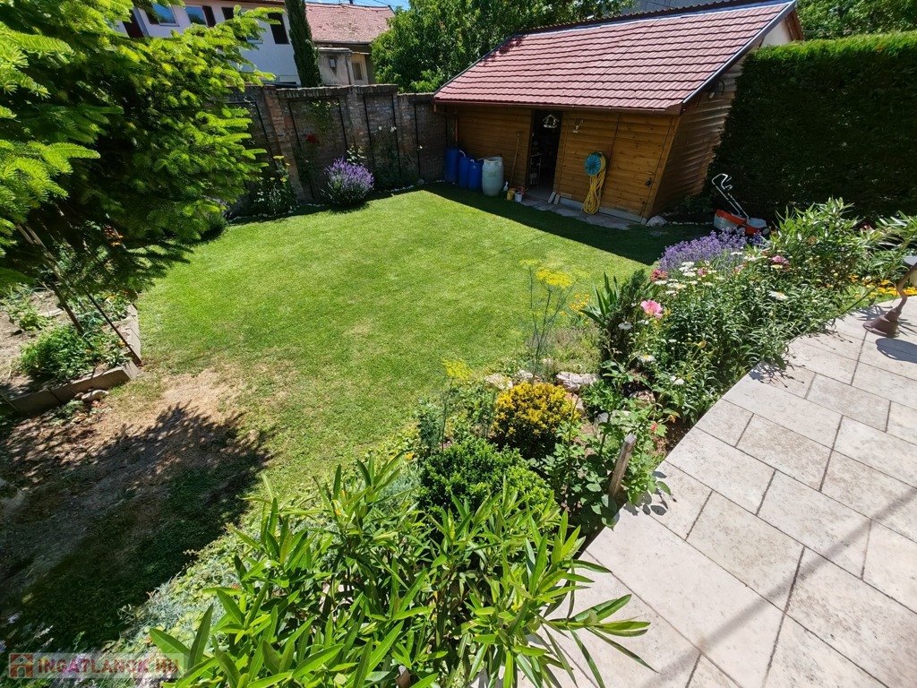 Csendes zsákutcában, 2011-ben épült, egyedi, mediterrán stílusú, 102 m²-es családi ház 400 m²-es parkosított telken eladó.