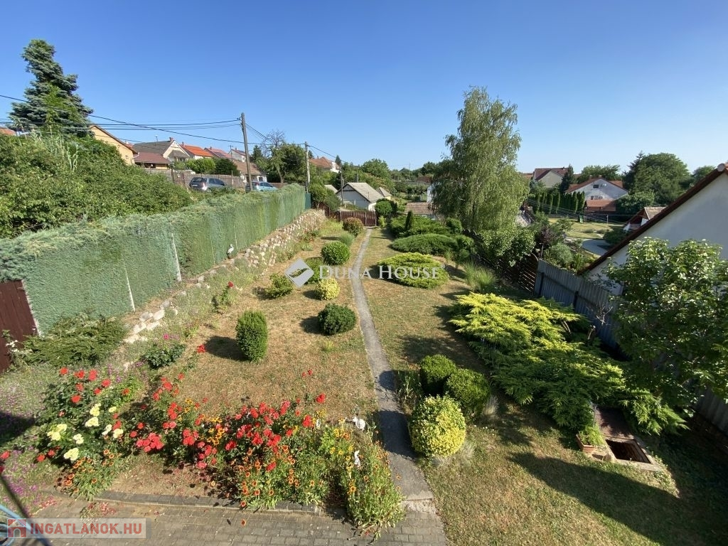 Telek körbekerített, első fele parkosított, gyönyörű növényekkel, hátsó részen gyümölcsfák, 2 tároló is található.