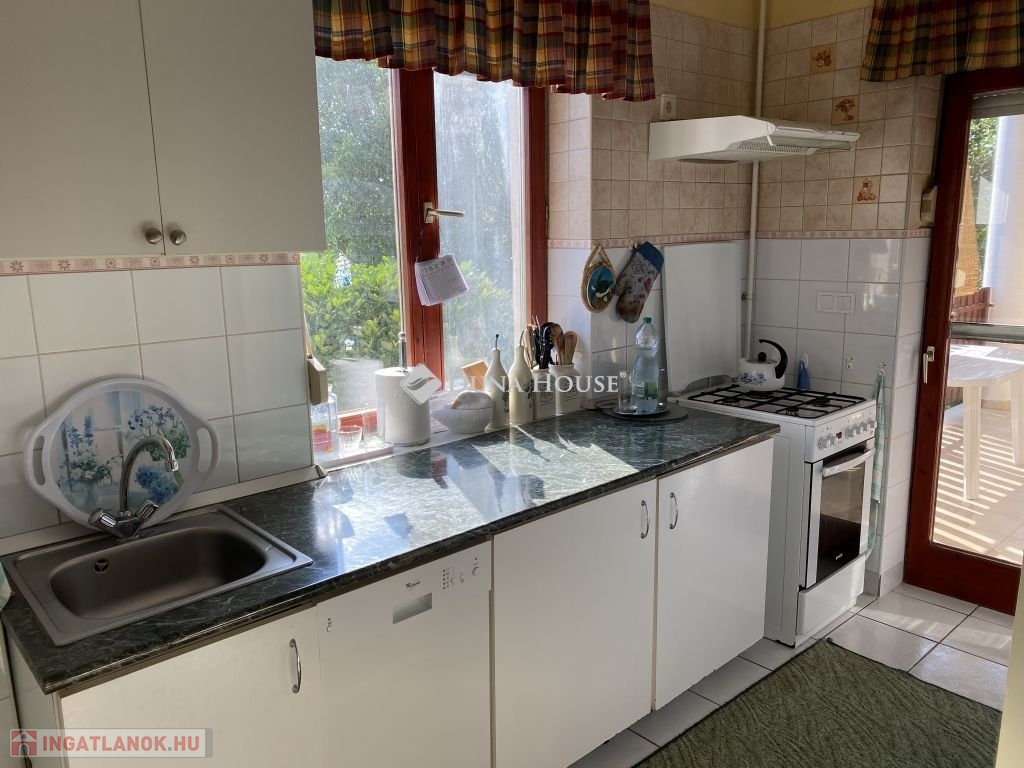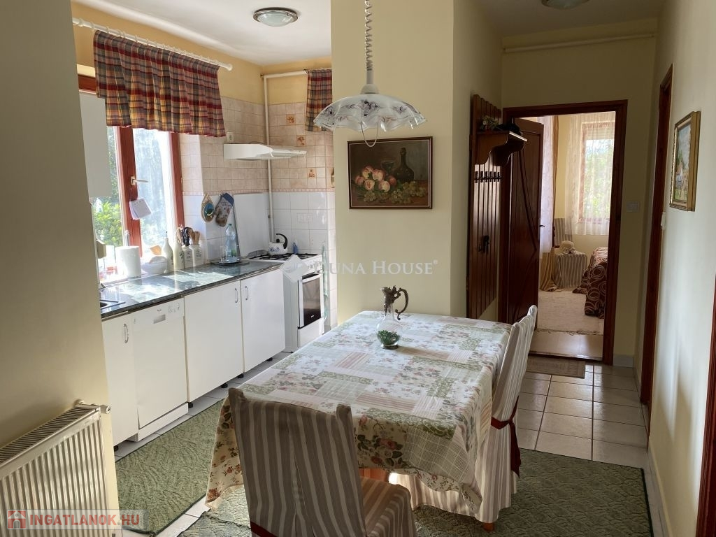 Ingatlan központi fűtésű kondenzációs gázkazánról, de egy hangulatos cserépkályhával is fűthető az alsó szint.